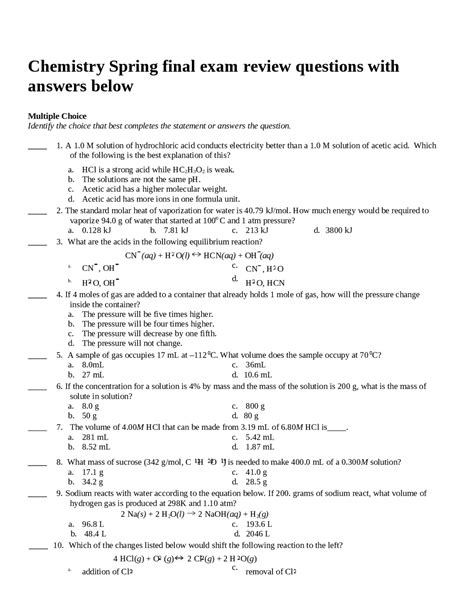 Free Download Chemistry Spring Final Exam Review With Answers Gutenberg PDF